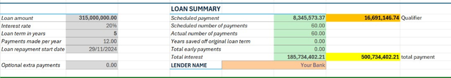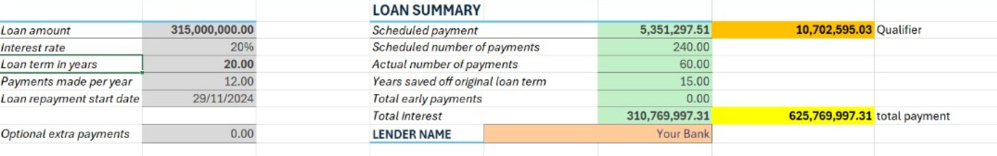 While most of the formal sector can access secured and unsecured loans, they are largely ineligible for the long-term loans required to purchase or construct a house. Even for those eligible, the numbers do not necessarily make financial sense. For the UGX 315 million apartment listed above, this would be the summary computation of the mortgage: