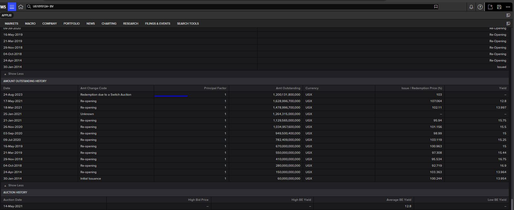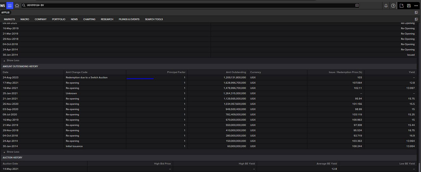 It was worth around UGX 1.6 trillion in August, but this is the second bond switch for this particular type of bond. In August, the BoU realized a total of UGX 480 billion in that switch. So they are bringing this to the market.